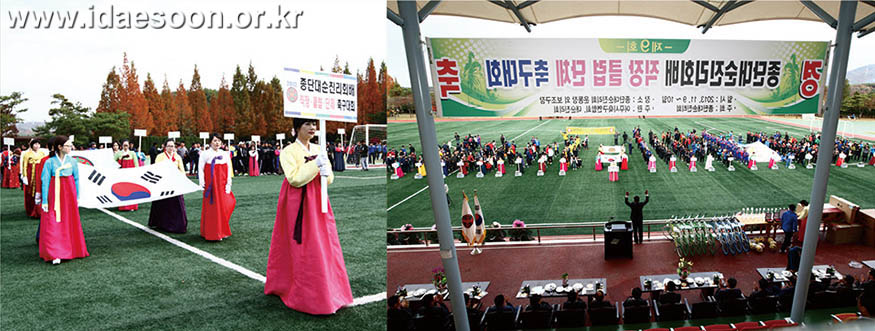 시민 1인 1종목 생활참여 유도와 체력증진, 대순진리회의 숭고한 종교적 윤리인 해원상생의 사상적 이념을 바탕으로 지역사회 발전과 회원 상호 간의 친목을 돈독히 하며 단결과 화합을 이루고 생활체육축구 저변확대에 기여할 목적으로 대회를 개최하였다. 여주본부도장 운동장에서 열린 이 대회의 개회식에서 여주본부도장 윤은도 원장은 환영사에서 “이번 축구대회를 통해 여러분의 건강과 건전한 여가선용은 물론, 아름답고 따뜻한 정이 넘치는 사회 분위기가 조성되어 여주시 승격과 여주시 발전에 기여하기를 바라는 마음입니다.”고 환영사를 전했다. 경기는 클럽1, 클럽2, 단체부로 나누어 토너먼트 방식으로 여주본부도장 운동장, 오학, 능서 구장 3군데에서 진행되었다. 클럽1부는 가남클럽, 클럽2부는 비와도차, 단체부는 잔나비FC팀이 각각 우승을 차지하였다. ![]() |